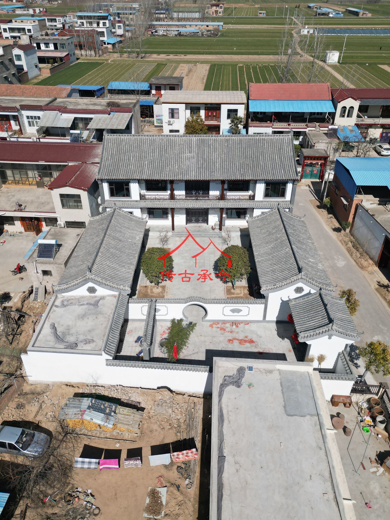 河南開(kāi)封中式四合院自建房、宅基地中式合院 白墻灰瓦四合院、月洞門(mén)中式宅院 兩層中式合院戶型、帶庭院自建房 二層挑空中式宅院