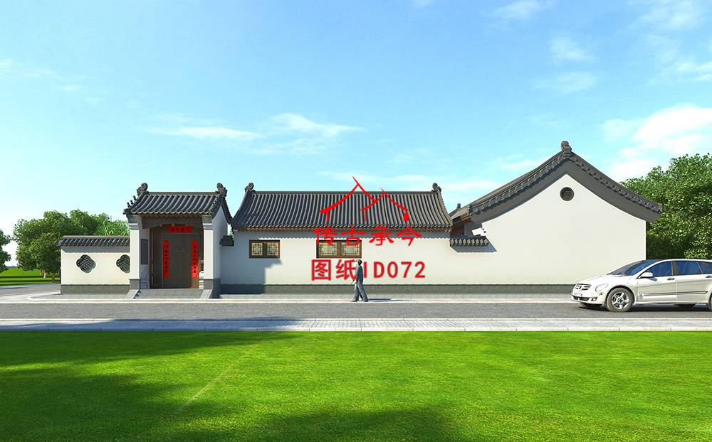 編號072:23.2*28.2米白墻灰瓦兩進(jìn)一層自建四合院全套施工圖紙設(shè)計圖紙