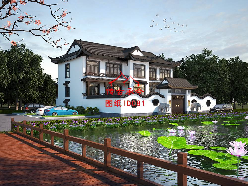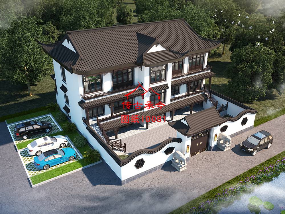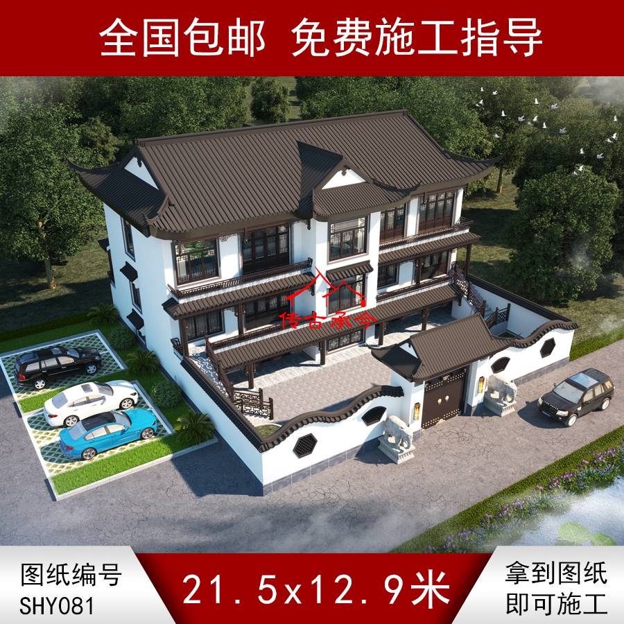 編號(hào)081:21.5*12.9米飛檐翹角三層自建蘇式合院全套施工圖紙?jiān)O(shè)計(jì)圖紙