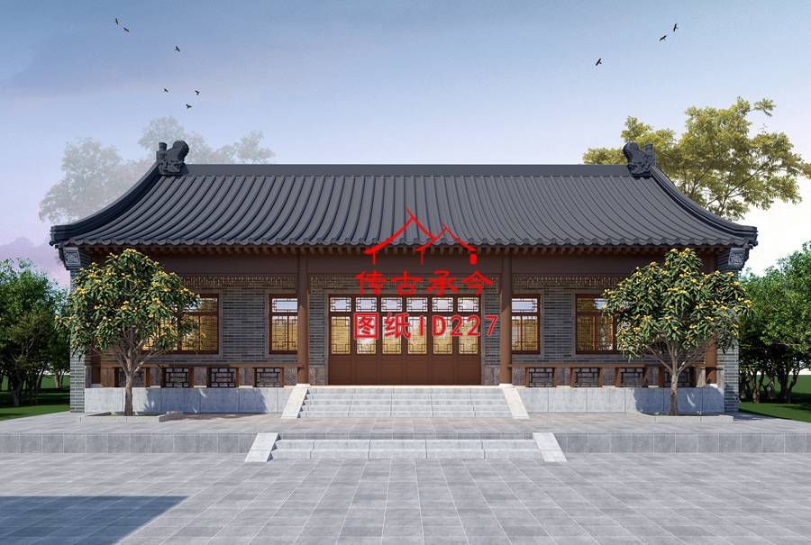 編號227:17.3*16.5米獨棟青磚三間仿古建筑全套施工圖紙設計圖紙