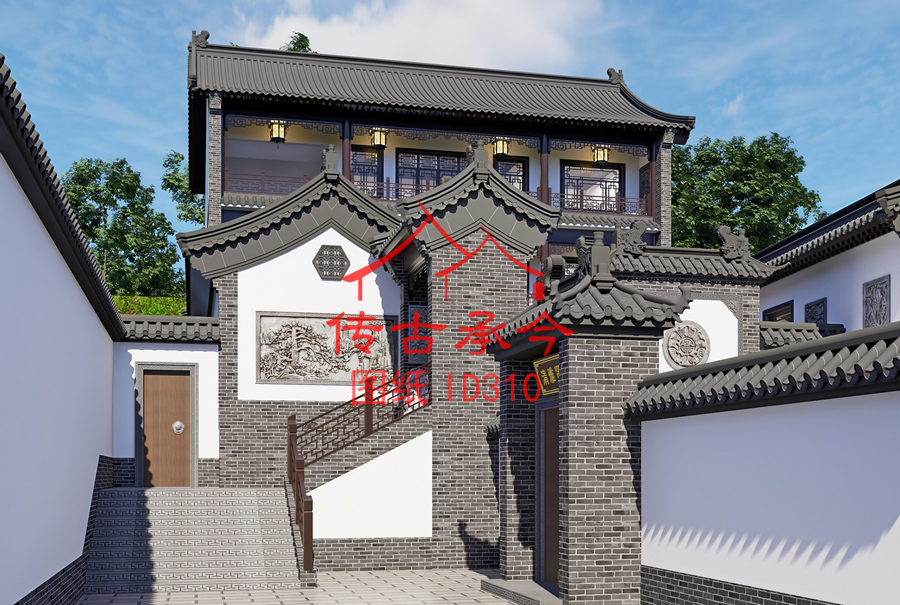 編號(hào)310:16.2*11.7米三層三進(jìn)院四合院全套施工圖紙?jiān)O(shè)計(jì)圖紙