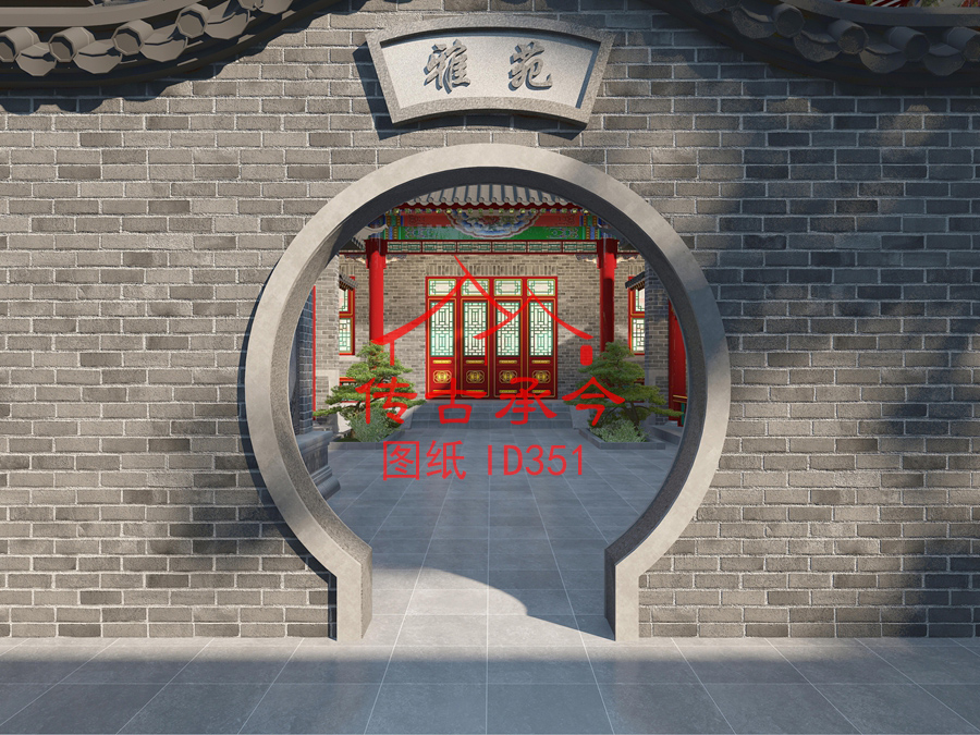 回廊 ,平頂出檐 ,廣亮大門 ,影壁墻 ,月亮門 ,青磚 |