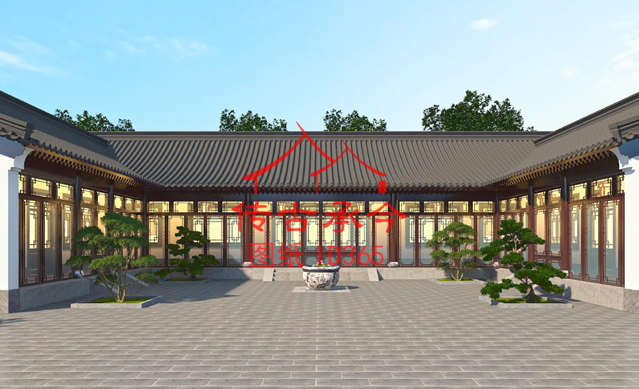 編號(hào)365:28*39.9米三合院白墻灰瓦新中式風(fēng)格全套施工圖紙?jiān)O(shè)計(jì)圖紙