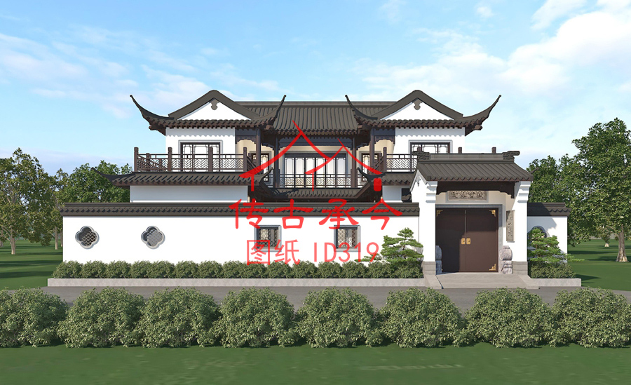 編號319:20*20米二層蘇式歇山頂三合院全套施工圖紙設(shè)計圖紙