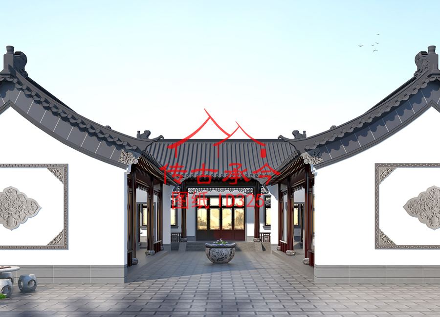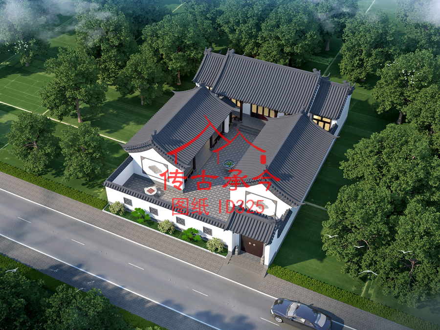 編號(hào)325:17*24.1米白墻灰瓦新中式三合院全套施工圖紙?jiān)O(shè)計(jì)圖紙