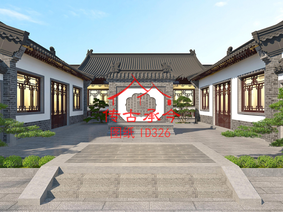 編號326:21*28米白墻灰瓦青磚柱硬山頂三合院全套施工圖紙設(shè)計圖紙