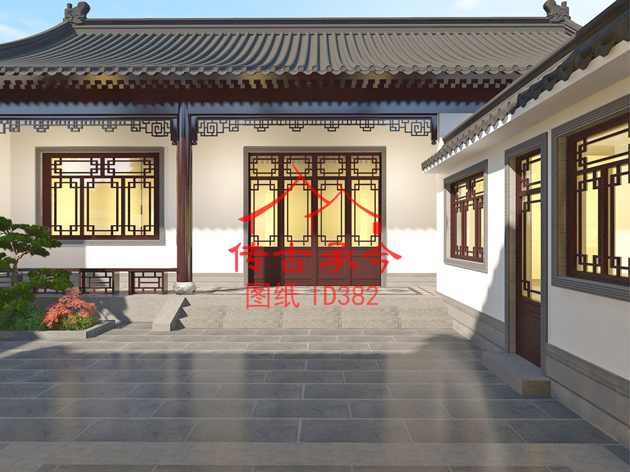 編號382:14.2*18.8米白墻灰瓦新中式三合院全套施工圖紙設計圖紙