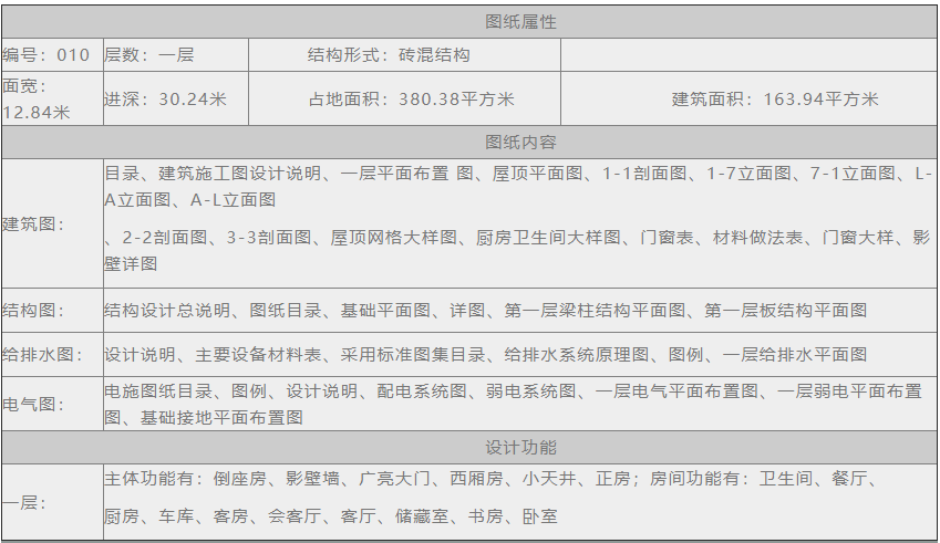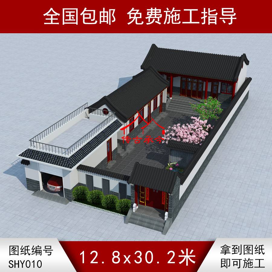 編號(hào)010:12.8*30.2米一層小型合院全套施工圖紙