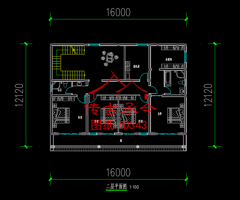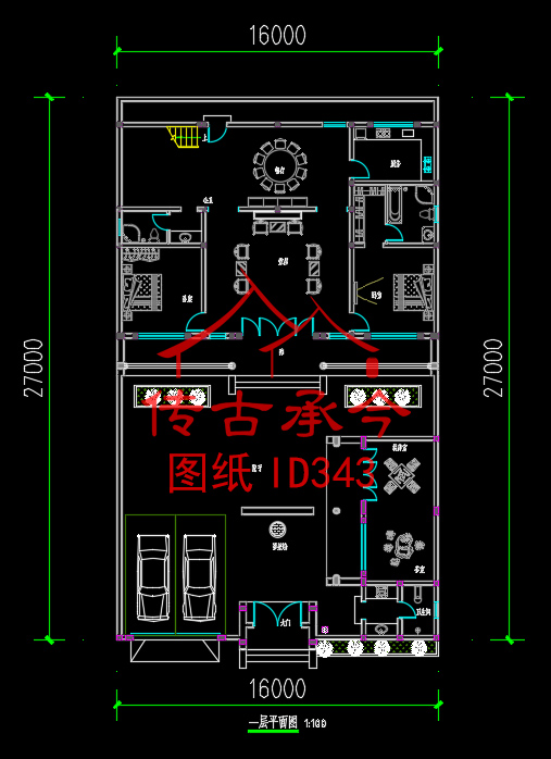 編號343:16*27米四合院全套施工圖紙設計圖紙 自建房圖紙 提供材料及技術支持