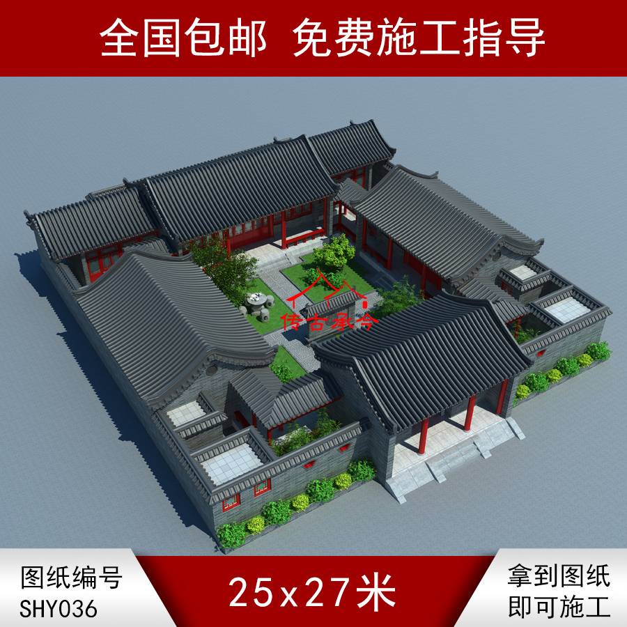 編號(hào)036:25*27米一進(jìn)一層青磚四合院全套施工圖