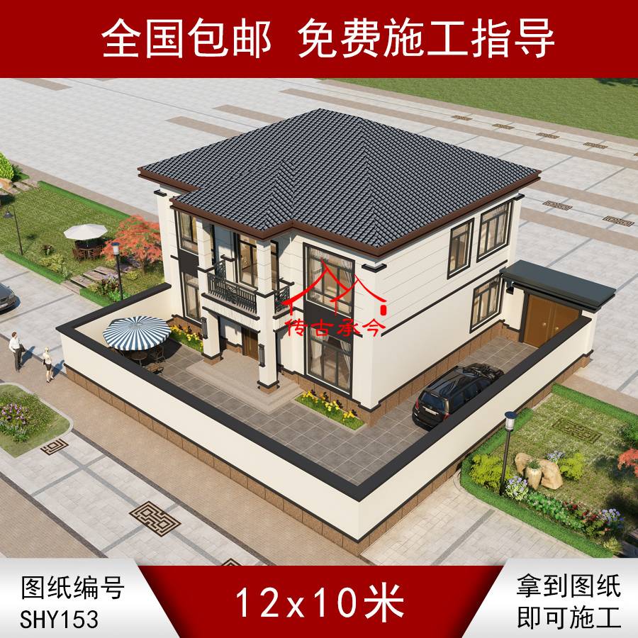 編號(hào)153:12*10米新中式別墅全套施工圖紙?jiān)O(shè)計(jì)圖紙