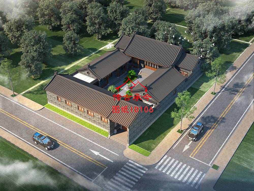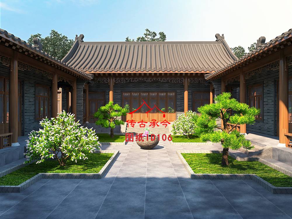 編號106:22.2*31.6米一進(jìn)青磚四合院施工圖紙