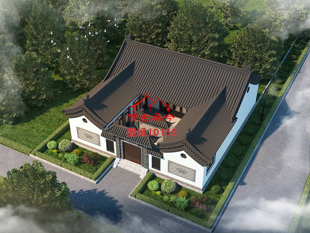 編號(hào)107:18.2*16.2米新中式二層歇山頂四合院