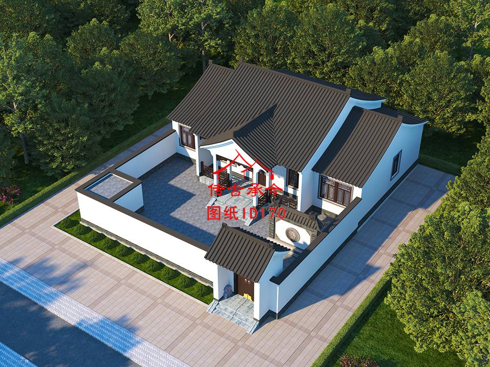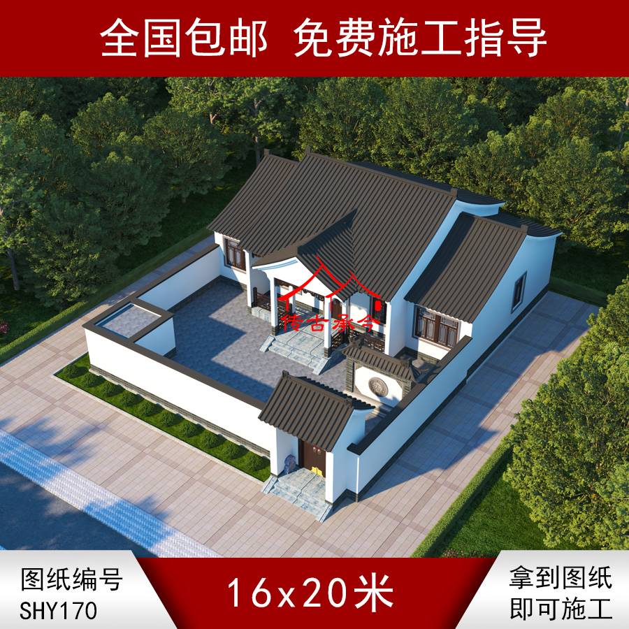 編號170:16*20米自建房白墻蘇派合院全套施工圖紙設計圖紙