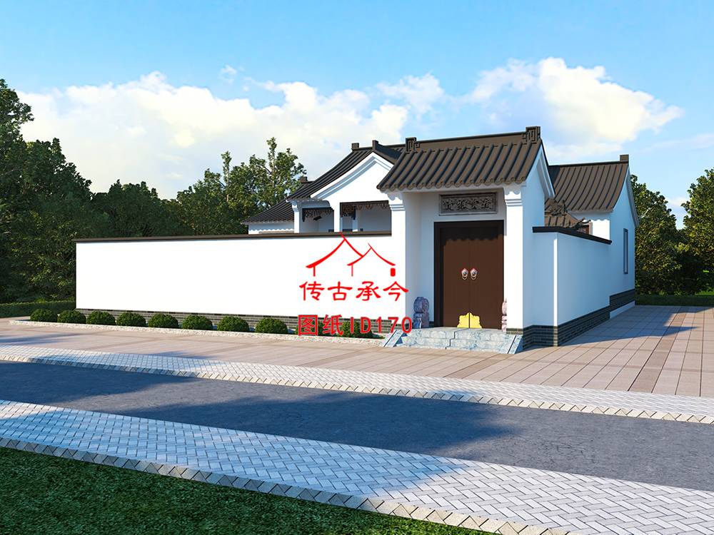 白墻蘇派合院平面布置圖 白墻蘇派合院鳥瞰圖 白墻蘇派合院效果圖 白墻蘇派一層合院效果圖 白墻蘇派合院主房效果圖
