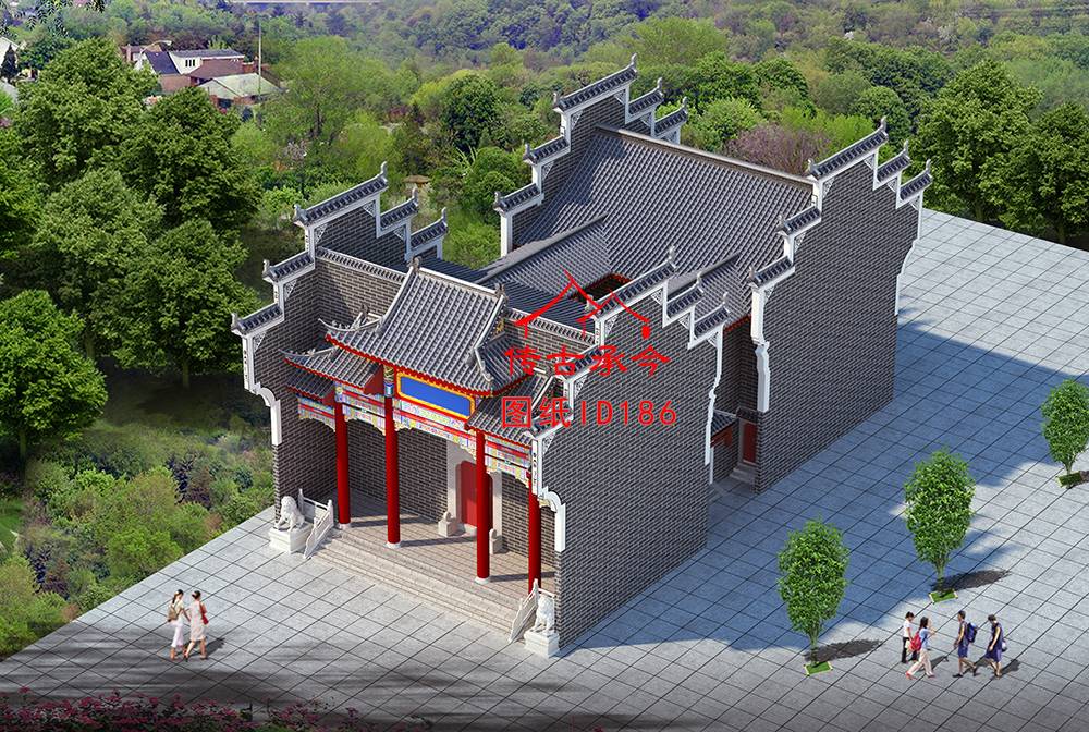 編號186:11.5*16.5米青磚馬頭墻徽派歇山頂祠堂全套施工圖紙?jiān)O(shè)計(jì)圖紙