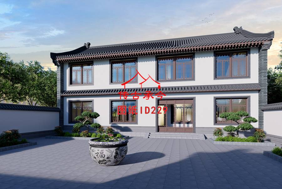 編號(hào)229:17.5*9.9米小型二層新中式仿古院子全套施工圖紙?jiān)O(shè)計(jì)圖紙