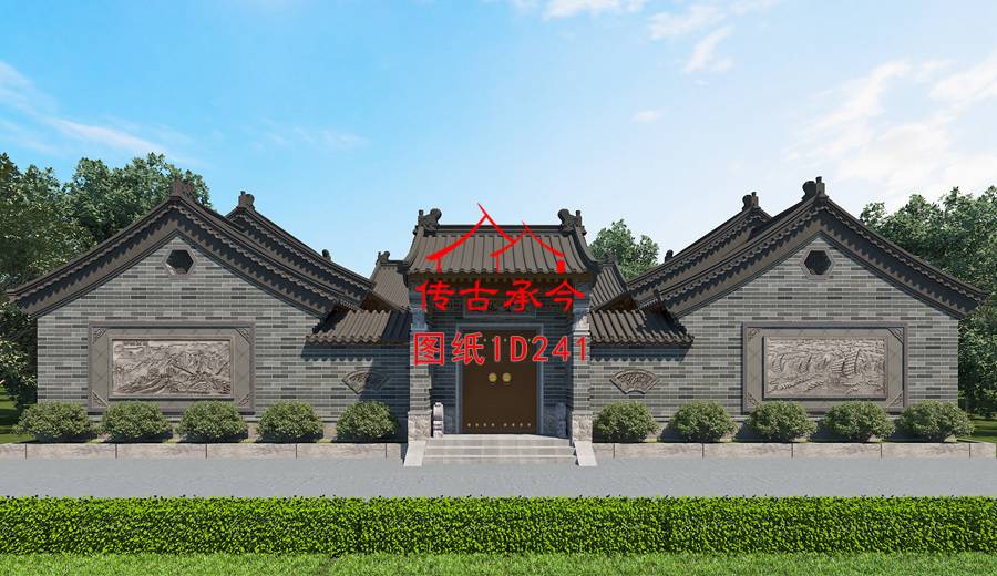 編號(hào)241:22.2*27.1米一層青磚三合院全套施工圖紙?jiān)O(shè)計(jì)圖紙