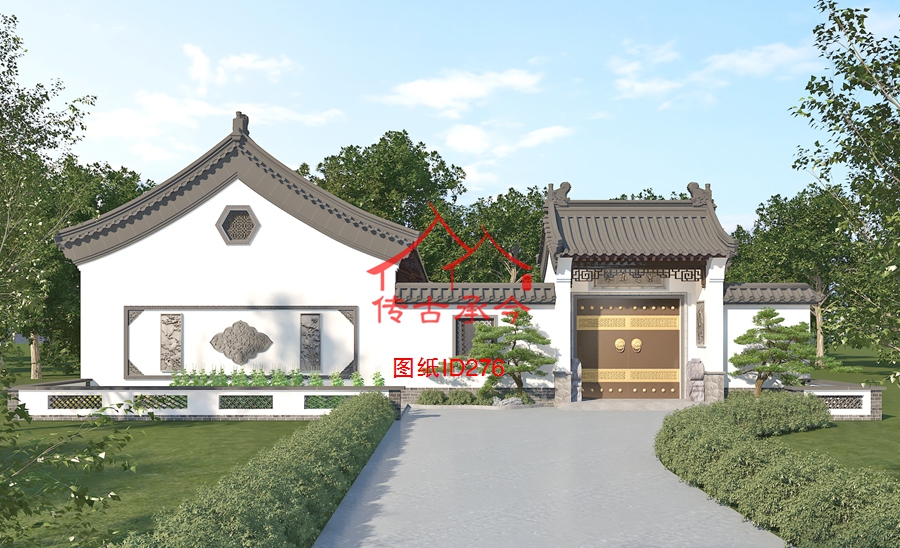 平頂出檐 ,廣亮大門(mén) ,影壁墻 ,露臺(tái) ,住宅 |