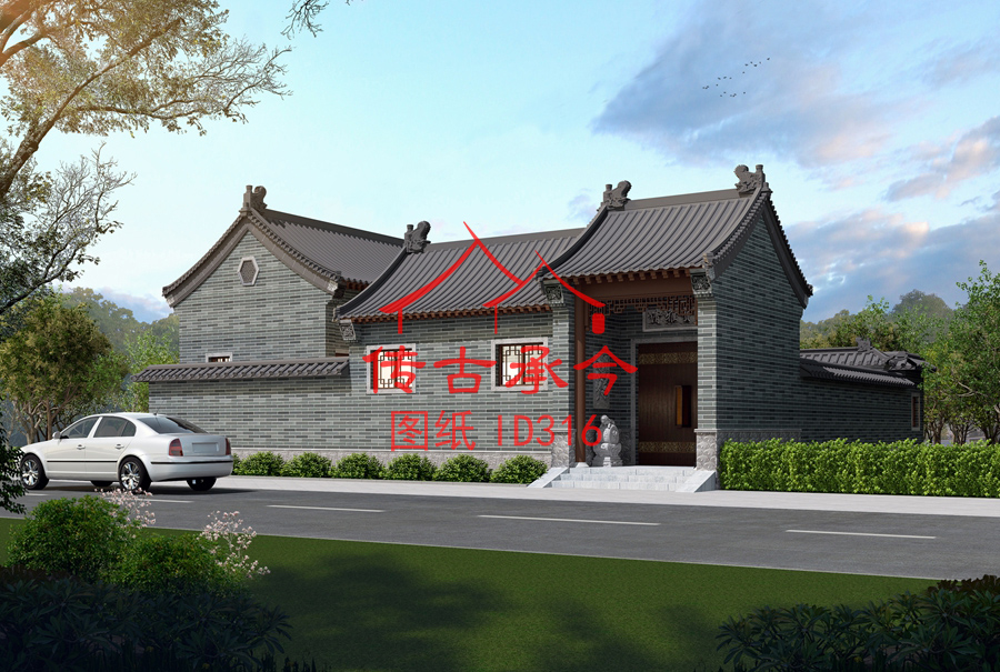 編號(hào)316:16*16.1米一層青磚清水墻小合院全套施工圖紙?jiān)O(shè)計(jì)圖紙