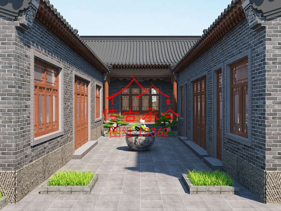 編號(hào)362:12*28.2米青磚風(fēng)格一層四合院全套施工圖紙?jiān)O(shè)計(jì)圖紙