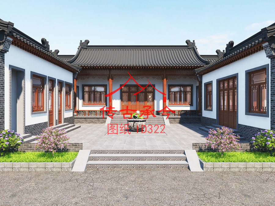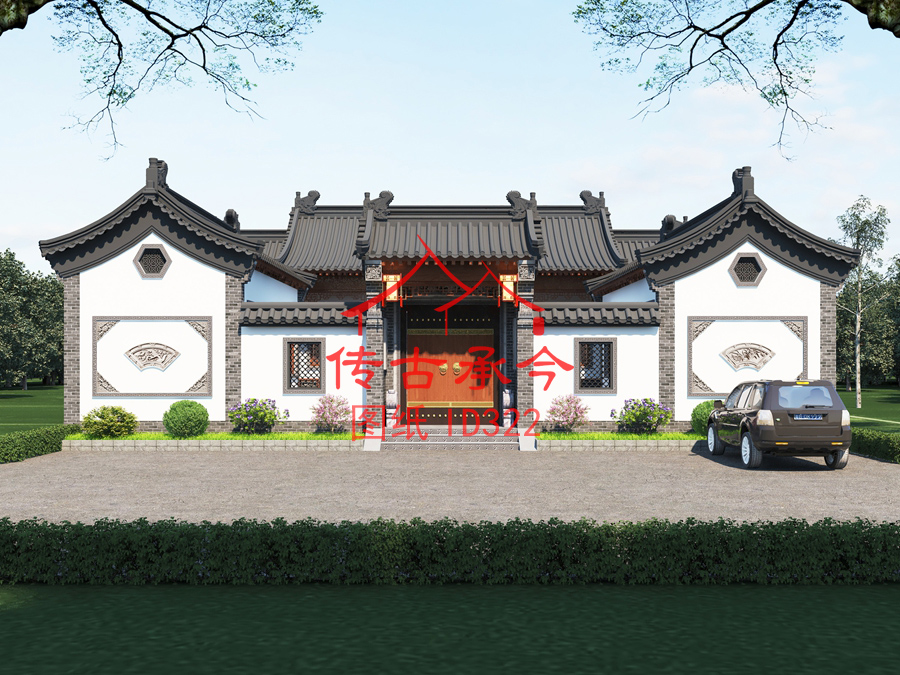 編號(hào)322:18*18米白墻灰瓦青磚柱三合院全套施工圖紙?jiān)O(shè)計(jì)圖紙