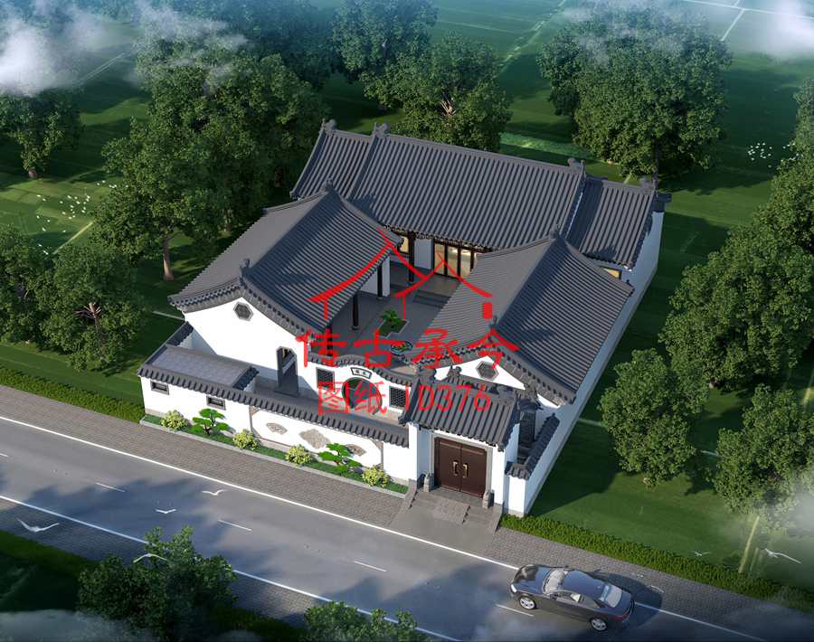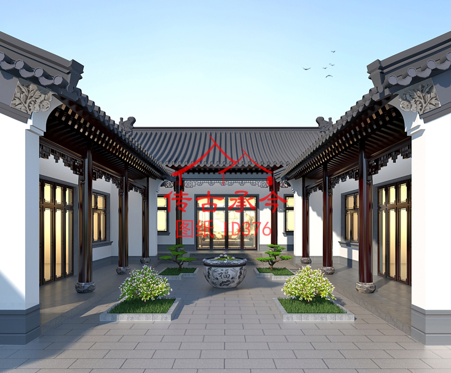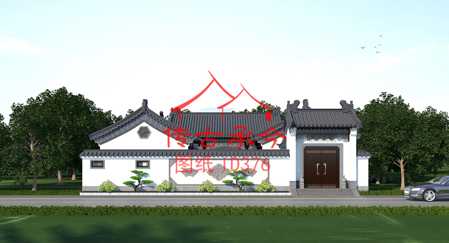 編號(hào)376:18.7*22.9米白墻灰瓦新中式風(fēng)格二進(jìn)三合院全套施工圖紙?jiān)O(shè)計(jì)圖紙