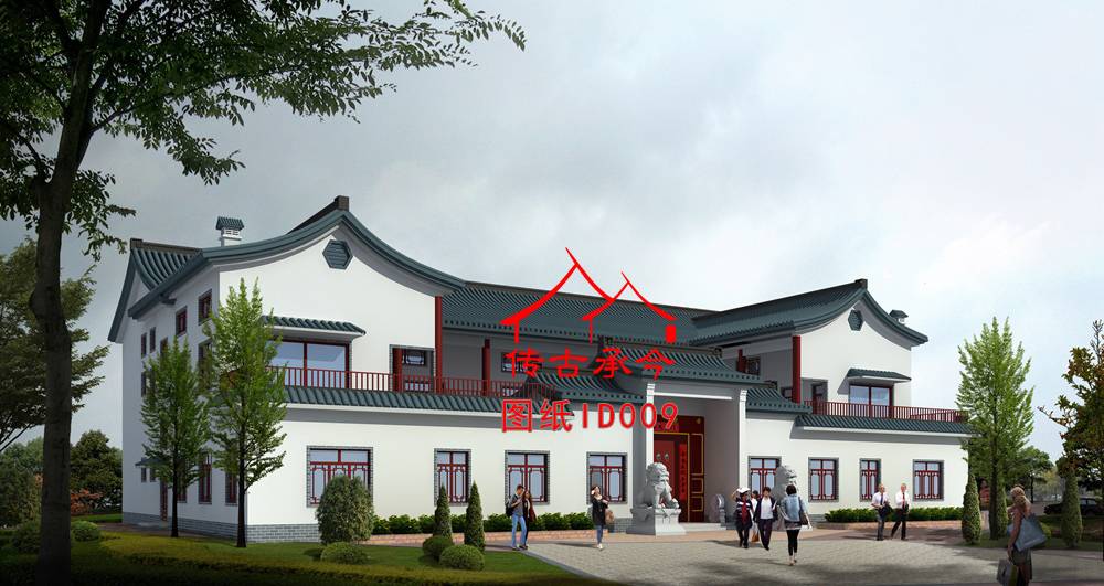 編號009:37.6*23.3米二層白墻新中式四合院全套施工圖紙