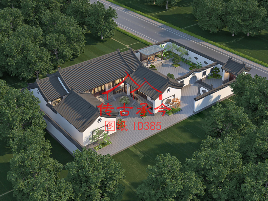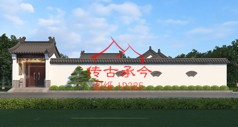 編號(hào)385:37.2*22米白墻灰瓦新中式三合院全套施工圖紙?jiān)O(shè)計(jì)圖紙