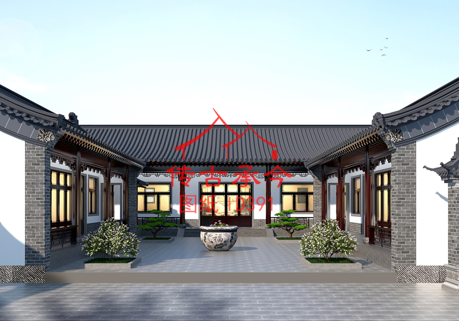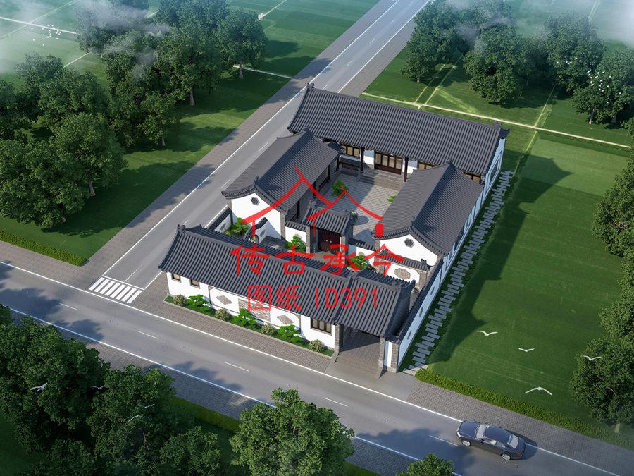 編號392:17*21米青磚風格三合院全套施工圖紙設(shè)計圖紙