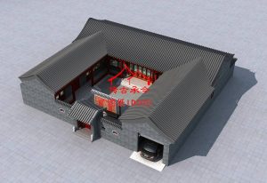 三合院戶型圖 徽派馬頭墻平頂出檐三合院鳥瞰圖 徽派中式院子效果圖 中式院子效果圖